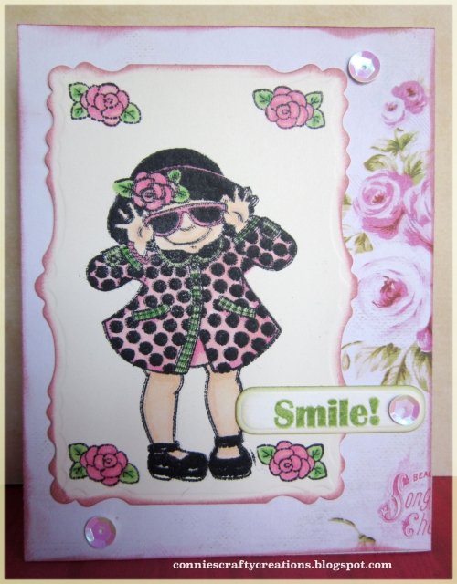 Hot off the press -- Janie's girls stamp set, image flowers and sentiment colored w/markers