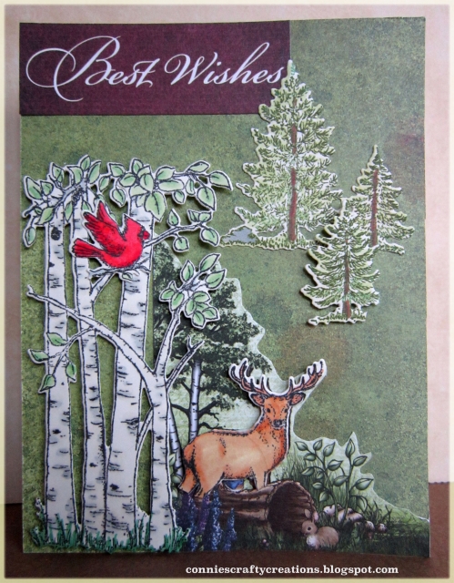 Heartfelt creations -- Woodsy Critters die and stamp set, Woodsy Treescape die and stamp set, all colored w/markers, Woodsy paper collection