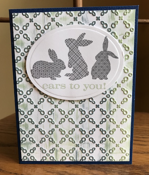 Another card using April's March technique challenge. I can't remember what inks I used on the background, but they might be SU dye ink cubes. This time I inked the focal stamp with two different colors.