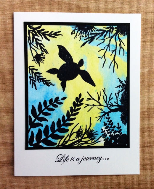 Here is my entry for April's Floating Alcohol ink challenge. The backgrounds were fun and fast to do. I used a green and blue ink for this one, but I didn't mark down my colors. The stamp is Just for Fun Sea Turtle Seascape.