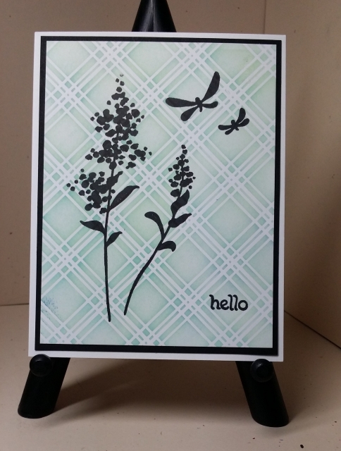 Nora, another friend, and I got together for crafting. I made a bunch of stenciled backgrounds using Distressed Oxide Inks. This one actually got made into a card. I made one more that Nora saved with an ornate Happy Birthday die-cut she just happened to have with her. It helped cover up a splotch of ink I made when I sponged onto the stencil without first tapping the sponge onto scrap paper. That card is in my scrapbook.com gallery. It has a die-cut instead of stamping.