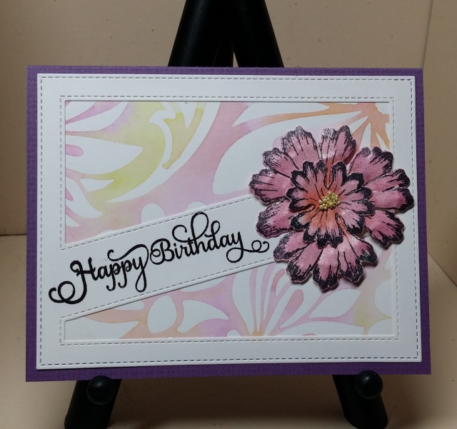 The lighter background was made by using the inked stencil after making the piece in the last post. I misted the inked stencil with water and flipped it over onto cardstock. With a very light touch so the ink and water wouldn’t move into the open areas, I used my finger to make sure the stencil made contact with the cardstock. I blotted with a paper towel before lifting off the stencil.