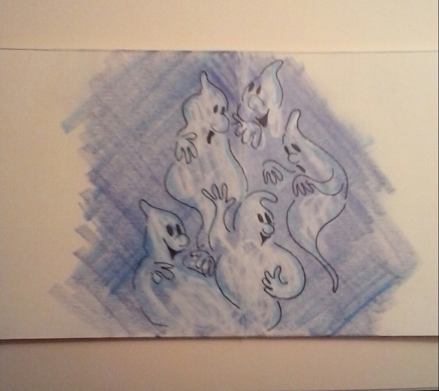 I drew my ghosts to haunt the belfry & colored with crayons