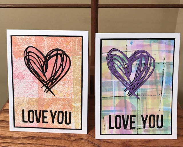 I really like you alternative technique on the left! It reminds me of the texture of flannel and would be fun to make with Christmas colors or spring time colors for a gardening theme. Your valentines are lots of fun! So glad you could make time to play. Thanks for sharing!