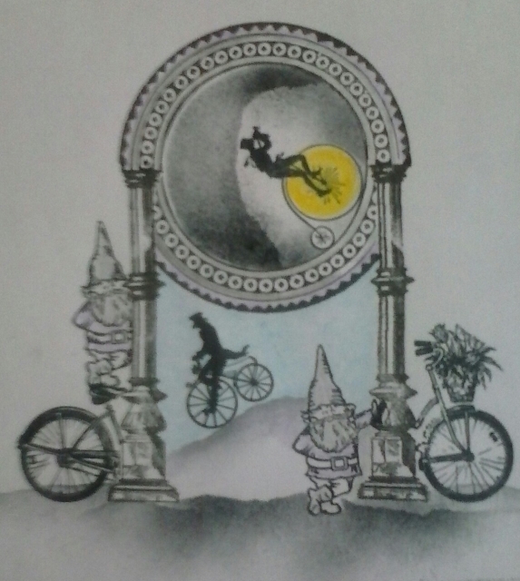 As often happens, it took on a life of its own as I went along. I knew I wanted to do some surreal bits & I'm happy to believe I came up with several physical impossibilities in the scene.