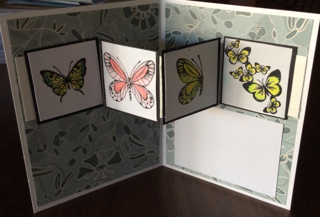 Here is inside of my w fold card. The rest of the butterfly’s colored with watercolor penciles.