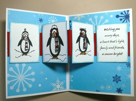 Someone's going to love the surprise inside! Love the red, the group of penguins and the sentiment!