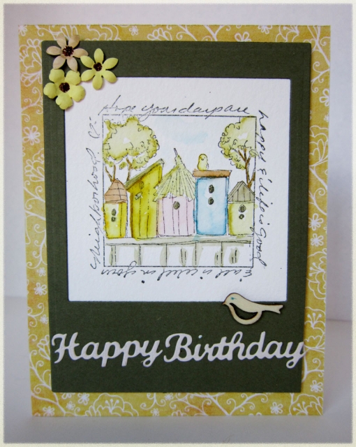 I have several birdhouse stamps and have never used them. Am going to dig them out right away. I love your card and the colors on the birdhouses. A great, great card.