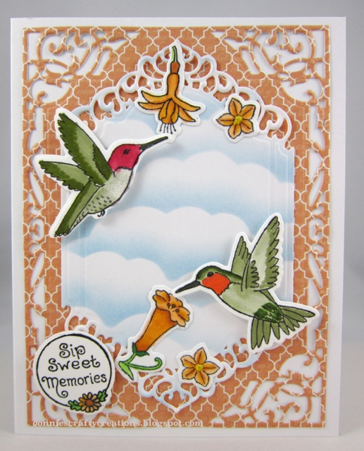 Impression Obsession - Hummingbirds stamp & die set, colored w/ markers and spectrum sparkle markers for humming birds