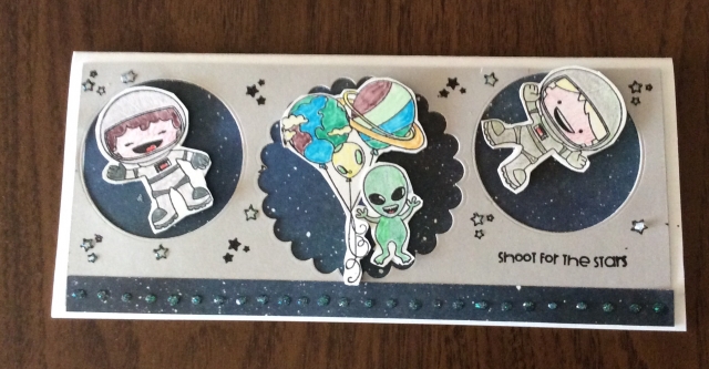 Stamped space guys from Pink and Main,emb,colored and cut out