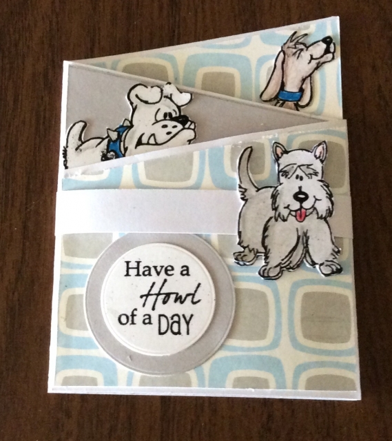 This is just so cute! Love the howling dog with the howling sentiment. Great idea to place another dog on the back rather than stamping.