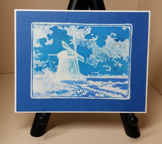 I decided to make this card which is like one made by Stacy Sheldon (JBgreendawn). I’ve always loved the card she made. She watercolored hers with Distress Oxide ink, but I just used Brusho. The Brusho stained the embossing so it didn’t just wipe off the way regular watercolors do. I made a mess, and two images landed in the wastepaper basket. I saved one, and when it dried, I painted with Brusho and water to add more color in some areas.