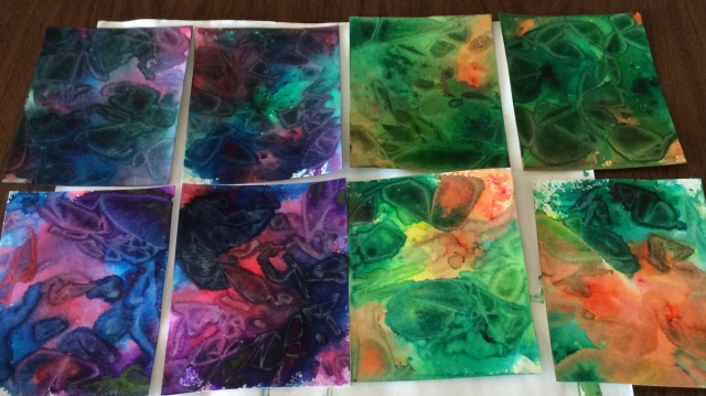 I used Color Bursts and glimmer mist and water and of course the plastic wrap.