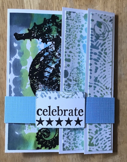 Stamps : Visible Image Create your calm (seahorse and bubbles), Hero Arts wave pattern background (far right panel, it's subtle), Unity sentiment