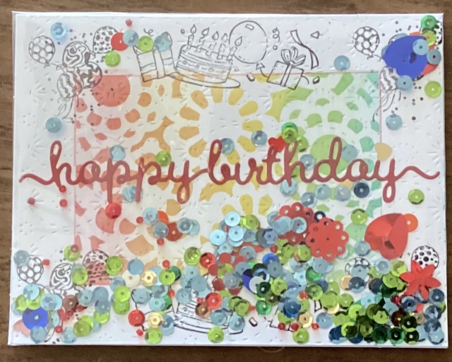 Thanks for taking my challenge Yankee! You got all of the colors of the rainbow in your stenciling. I think the piercing plate coordinates well with your stencil. This is a fun, festive birthday card!
