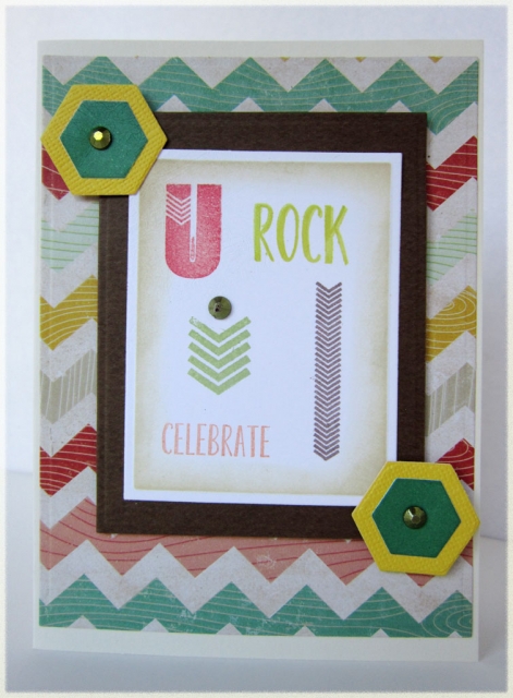 I'm liking the frame around your sentiment piece! Love that background paper and the way the chevrons are repeated in the stamping.
