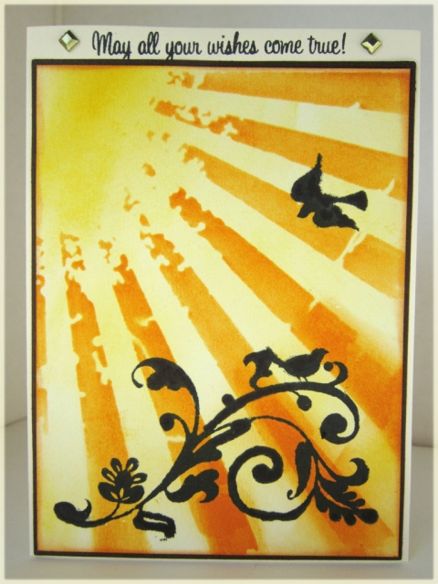 This Tim Holtz stencil is meant to have the rays come from the side but I wanted it on the corner so I had to adjust the stencil as I went along to make the rays reach to the other corner.