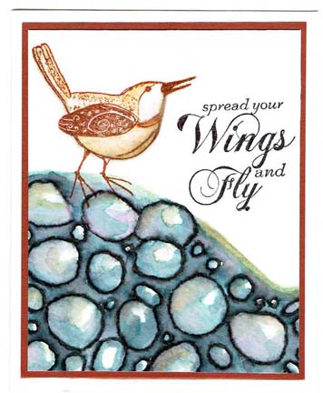 That technique worked perfectly on these rocks, they look great, love the swirls on the sentiment to go with the stylish bird!