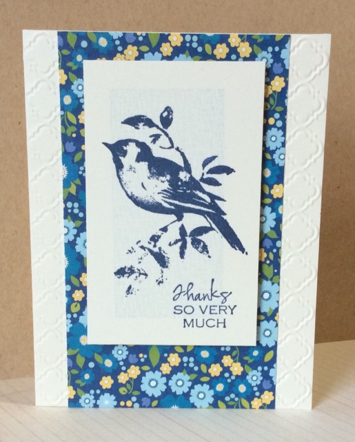 This is my favorite of your set! I like how you used your flower paper with the bird. I like the sentiment font with the bird. Great set.