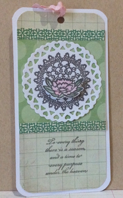 I used stamped image, two papers from kit. I liked the verse talking about the changing seasons for the Time theme.