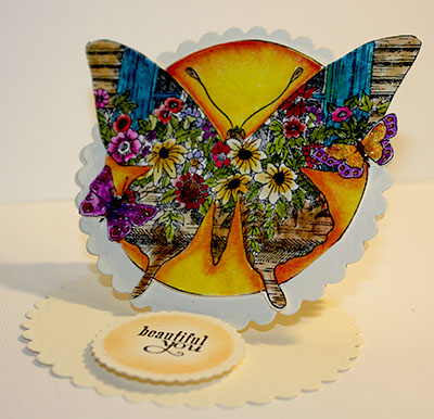 The image was watercoloured with Tombow markers, and the sun was watercoloured with Inktense watercolour pencil crayons and then painted with Twinkling H2O's. Thanks for looking.