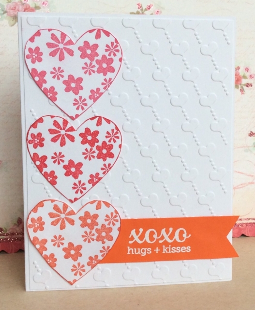 very pretty, you have found some neat embossing folders, the flowers are so pretty with the hearts!