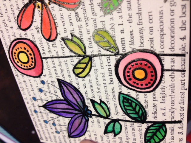 I recently purchased a pack of the sakura glaze pens to play around with. They're fun to use to add little doodles and things to your images. On this image I used the black one to outline around my stamped image. This is a close up shot of it. It gives a nice dimension to the outline.