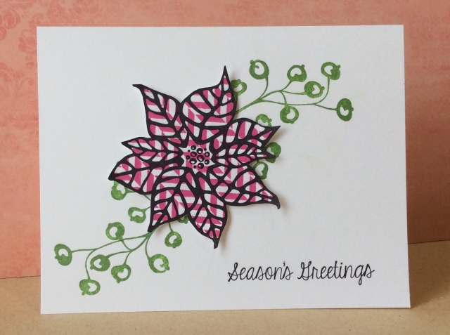 It is amazing how different the poinsettia looks stamped in black on a pattern v. the first card. Wow. And the poinsettia looks great stamped on hte tweed background.