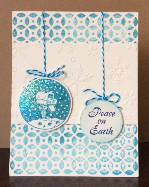 Background (Hero Arts) stamped with distress inks and watercolor spritz technique. Panel was embossed (Darice) with snowflakes.