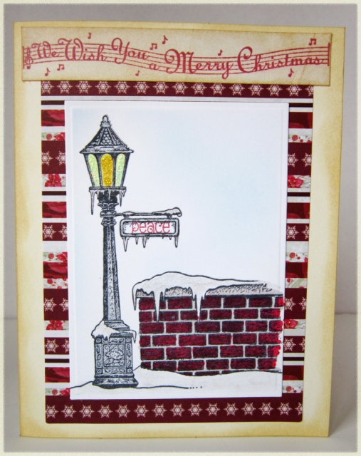 Stampabilities -- Vintage lamppost, colored w/markers, we wish you a merry Christmas sentiment stamp