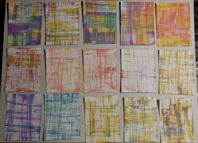 Here are the backgrounds I made over a year ago after seeing the cards that Karen Dunbrook and Loll Thompson posted. I thought I'd post them now since Jan has a Happy Mail Challenge using this technique with Distress Oxide Inks. I will make new ones for the challenge, but I thought it would be good to see more examples. Some of my favorites are the ones with less ink on them. I used Distress Oxide Inks, but I think I only had the first twelve at that time so I supplemented them with some regular Distress Inks. I used Neenah Classic Crest Solar White 80-lb. cardstock, Distress Black Ink, and white acrylic paint.