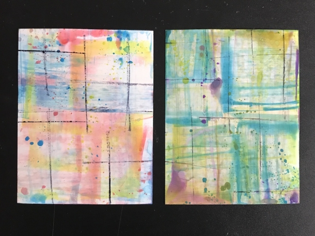 After much persuasion by Jan and April, I found a piece of Ranger glossy cardstock and continued making backgrounds for Jan's challenge.