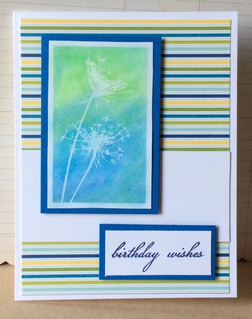 I stamped the image (IBFS Silhouette Fennel) with versamark ink and then blended several colors of Pebbles Bright Chalks. The versamark allows more play time for blending than the Avery Elle quick drying pigment inks. I was surprised how well a very solid image worked!