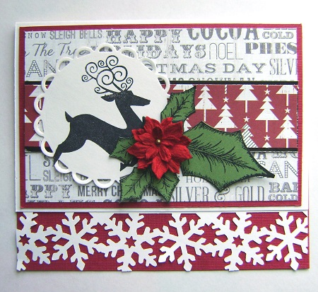 Had fun making this for the Feb. Christmas All Year challenge. I used my new pad of Christmas paper as you will see in my other 2 cards too.