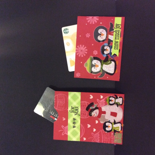 these were super quick to put together. I cut some red cardstock and adhered 3 sides. I used some really cute stickers I had on hand, they're all from Hobby Lobby and I stamped some snowflakes on the penguin one and added some ornaments and hand drew some hearts to the snowman one. TFl :)