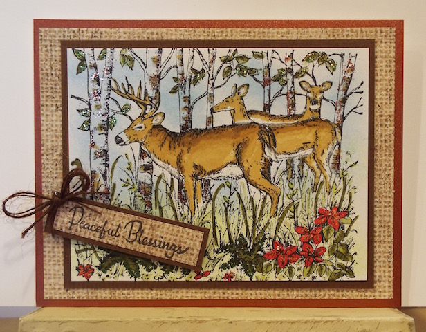Made a card using this image at a wonderful marathon class at "Stamp On Over". I just had to purchase this image, making this rendition somewhat different than the class sample. Colored with Spectrum Noir pens, and adhered stickles to some of the images. Image is Northwoods as well as the quote. TFL