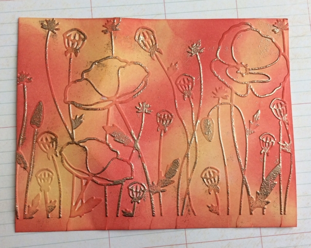 I wasn't quite done ooing and aaing about that other embossing folder and you bring out this one. I really like these colors too. I bet it was hard not to make a big mess putting the embossing powder on this one. It is beautiful. Thank you for sharing.
