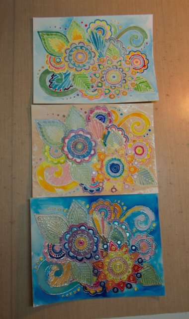 I used tube watercolor paints on all the examples, though with the last one I did , I started to use distress inks on the leaves in green, but then switched to paint.