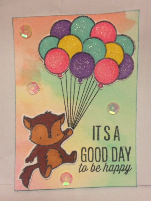 OMG that critter is so cute. Love the background and the sequins. I bet this is really sparkly in real life between the sparkle on the balloons and the sequins.