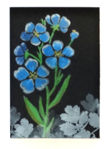 I stamped flower on black card w/white pigment ink and once dry colored with regularPrimsacolor pencils.  I added generational stamping at the base with white leaves.