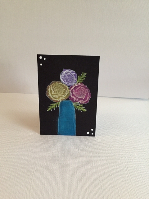 Images are from Wplus9 coming up roses. I stamped them with memento luxe wedding white ink and colored them with inktense and prismacolor pencils. I added the second layer of the roses with the white ink pad. I used a white signo pen for doodles.