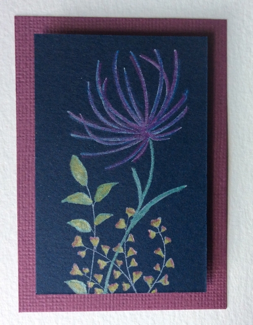 This is a stunning ATC! It will be an eye catcher on my page. The stamp is a wonderful selection. Love the blended colors and colors selected for this image. The mat is a special finishing touch. Thank you Heidi!