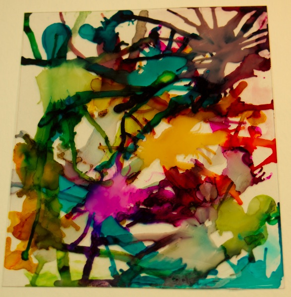 This is the Challenge 4 using a straw to blow AIs over acetate----it is also showing the back side of the piece over white BG (thus you are looking through the acetate at the AIs---see thread for posting of front side).
