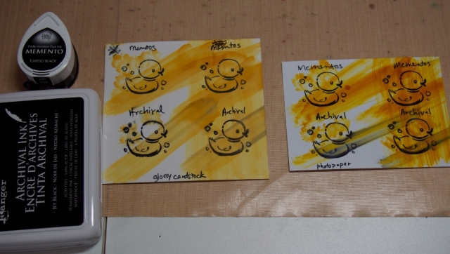 This is the test I did with Ranger's Archival Ink and Mementos Dye Ink and Butterscotch AI.