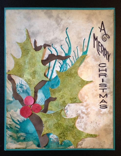 I used Tim Holtz/Sizzix Holly branch die to cut the branches, leaves and berries from alcohol inked glossy paper.