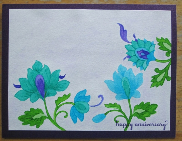 I made this card for my parent's anniversary (41 years this year). The stamps are from a new set I got from Altenew. I colored them with Zig Clean Color watercolor markers. I'm pretty sure it was the first time I used a few of those markers. I'm not sure who made the sentiment stamp.