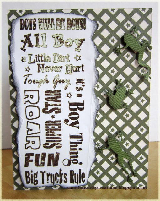 Great impressions -- all boy sentiment stamped, Molding paste w/ brown ink Tore edges and applied Black Soot distress inks