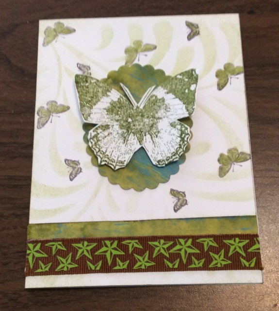 Stamped and embossed moth, cut out and put on some of paper I made in the warm up.