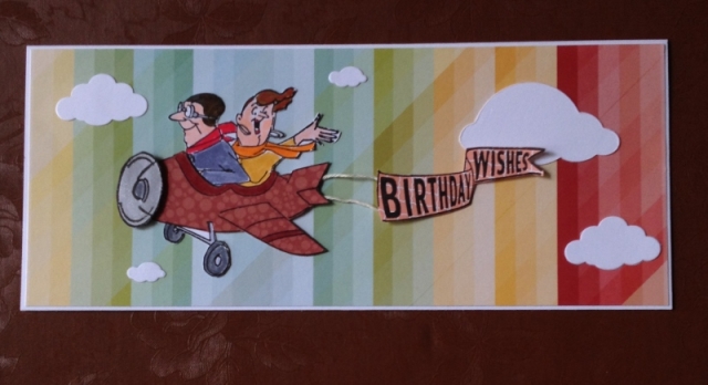 Stamps are Art Impressions colored with Tombow Markers. The airplane is paper pieced and the propellor is glittered and popped up. Printed paper is Studio Calico Snippets collection except for the banner which was stamped on a small scrap of SU paper. TFL! Thanks for the challenge April!