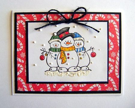I found this image in a pack I received. I also found some candy cane pp for the background. I used White Liquid Applique for the snow and on the hats.
